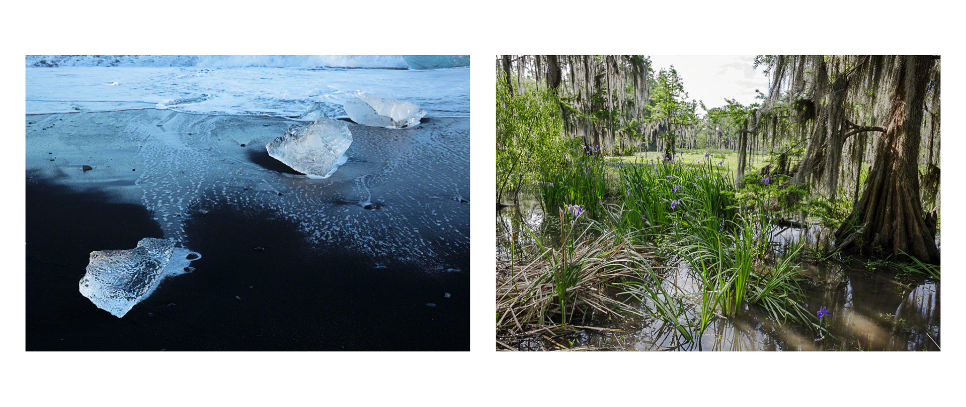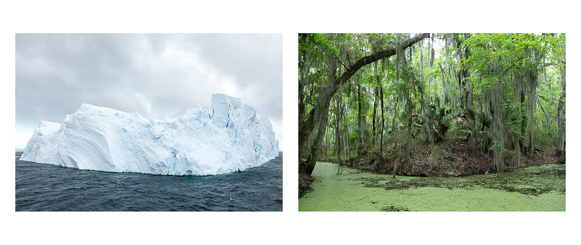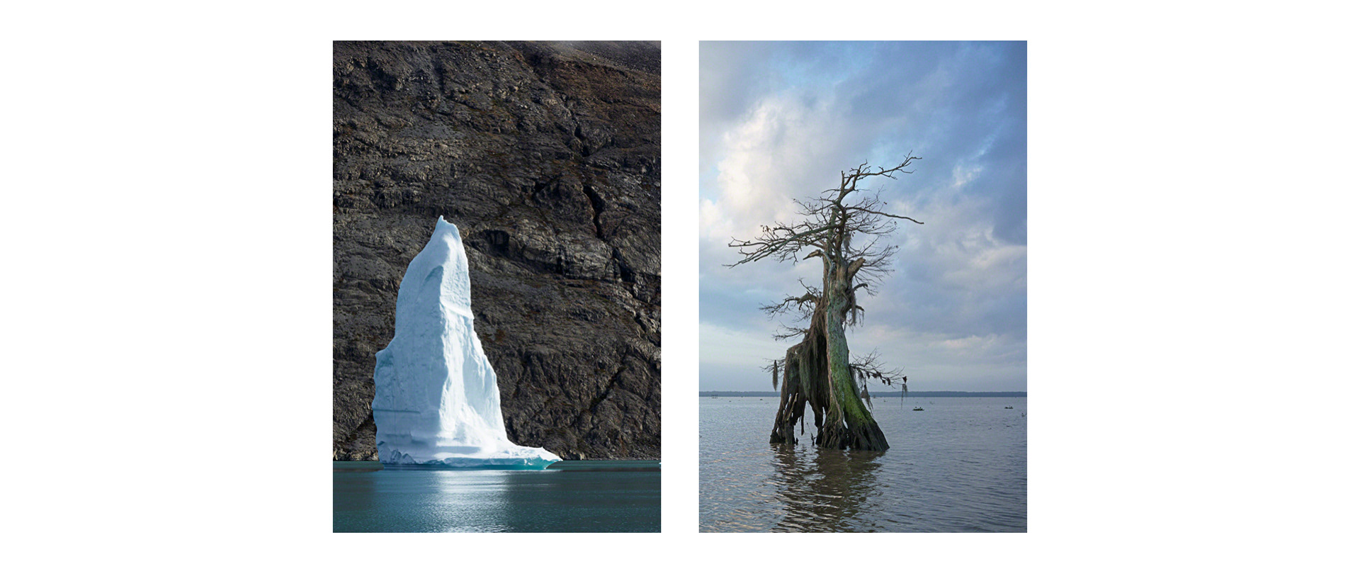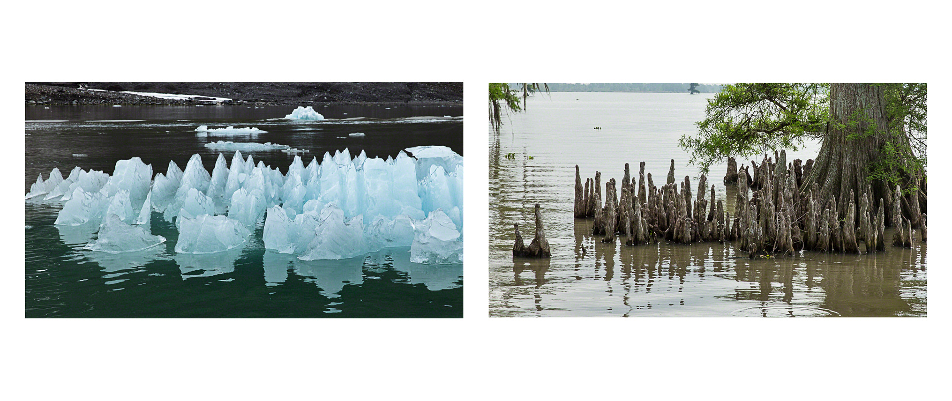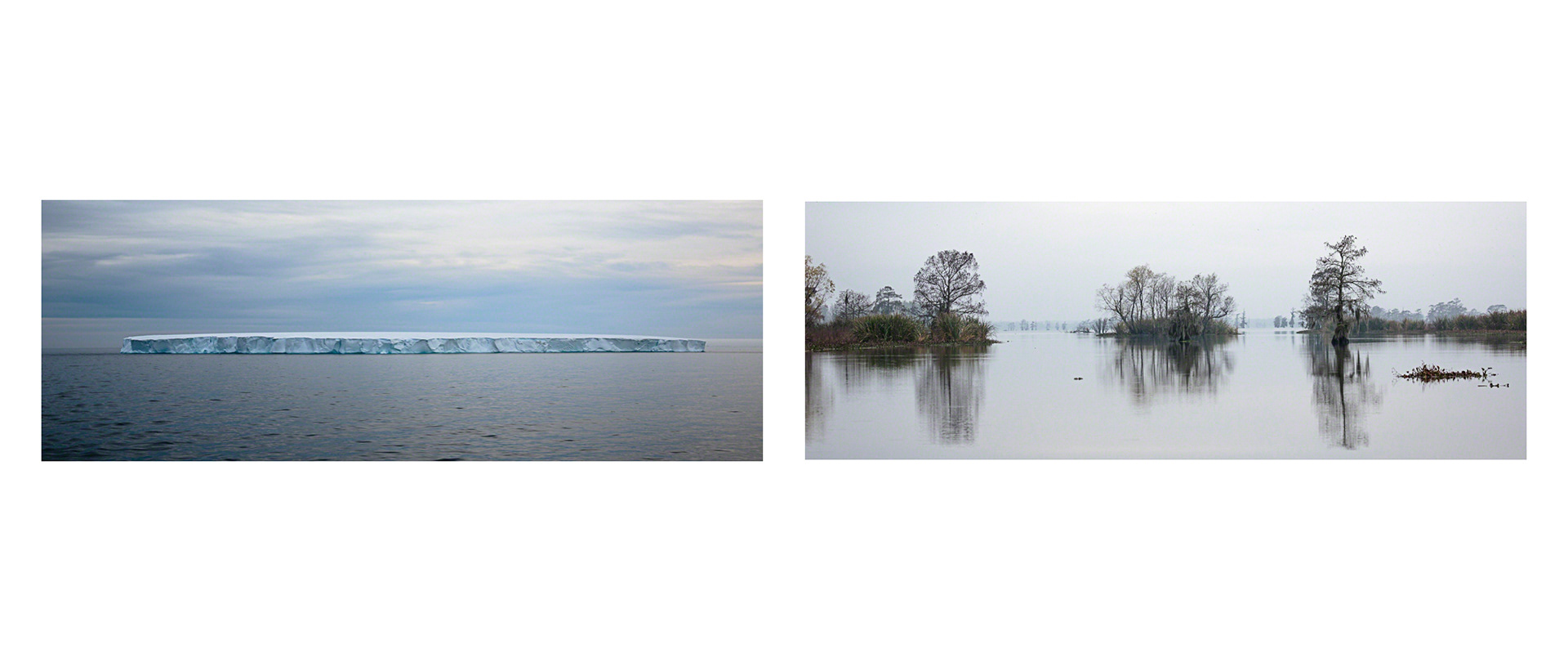 Over the course of seven years, Tina Freeman photographed the Louisiana wetlands and Arctic and Antarctic glaciers. In Lamentations, Freeman pairs images from each place in a series of diptychs that function as little stories about climate change, ecological balance, and the connectedness of things across time and space. The large, color photographs in Lamentations make plain the crucial, threatening, and global dialogue between water in two physical states.