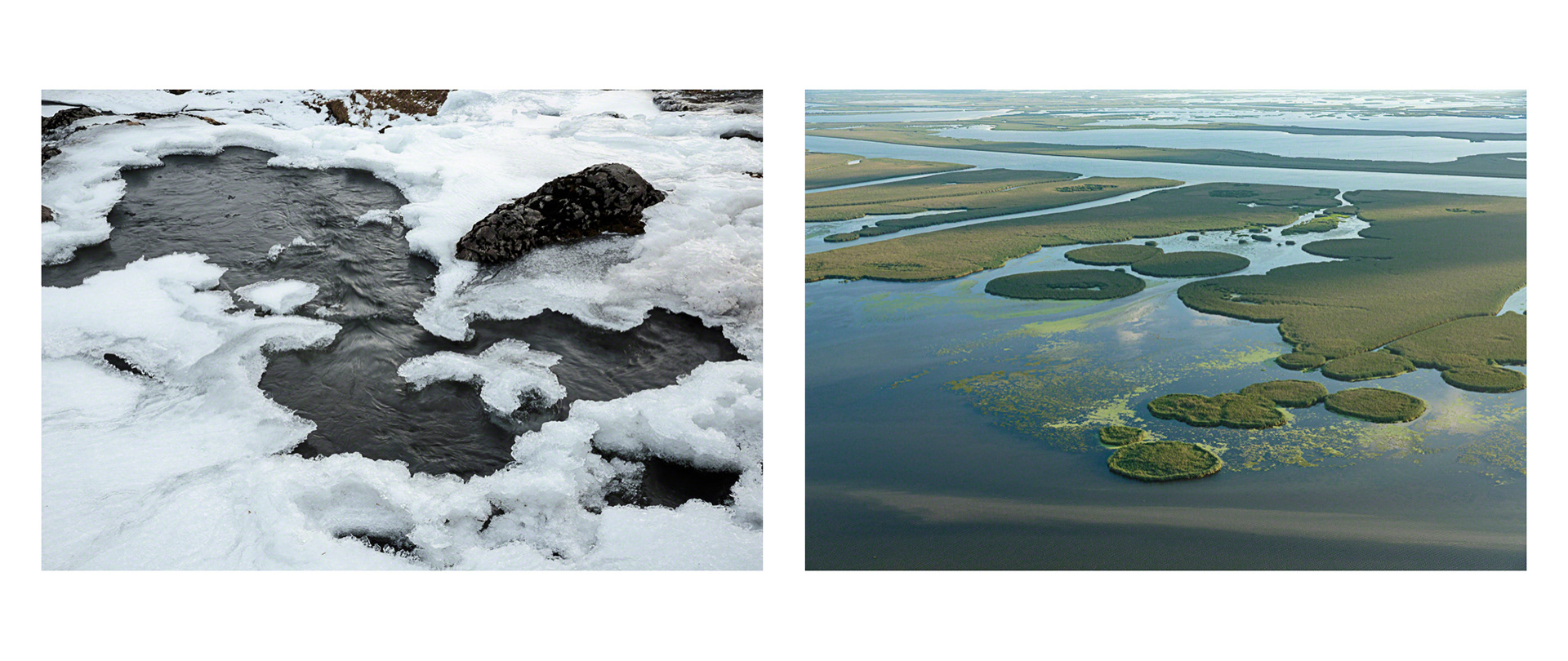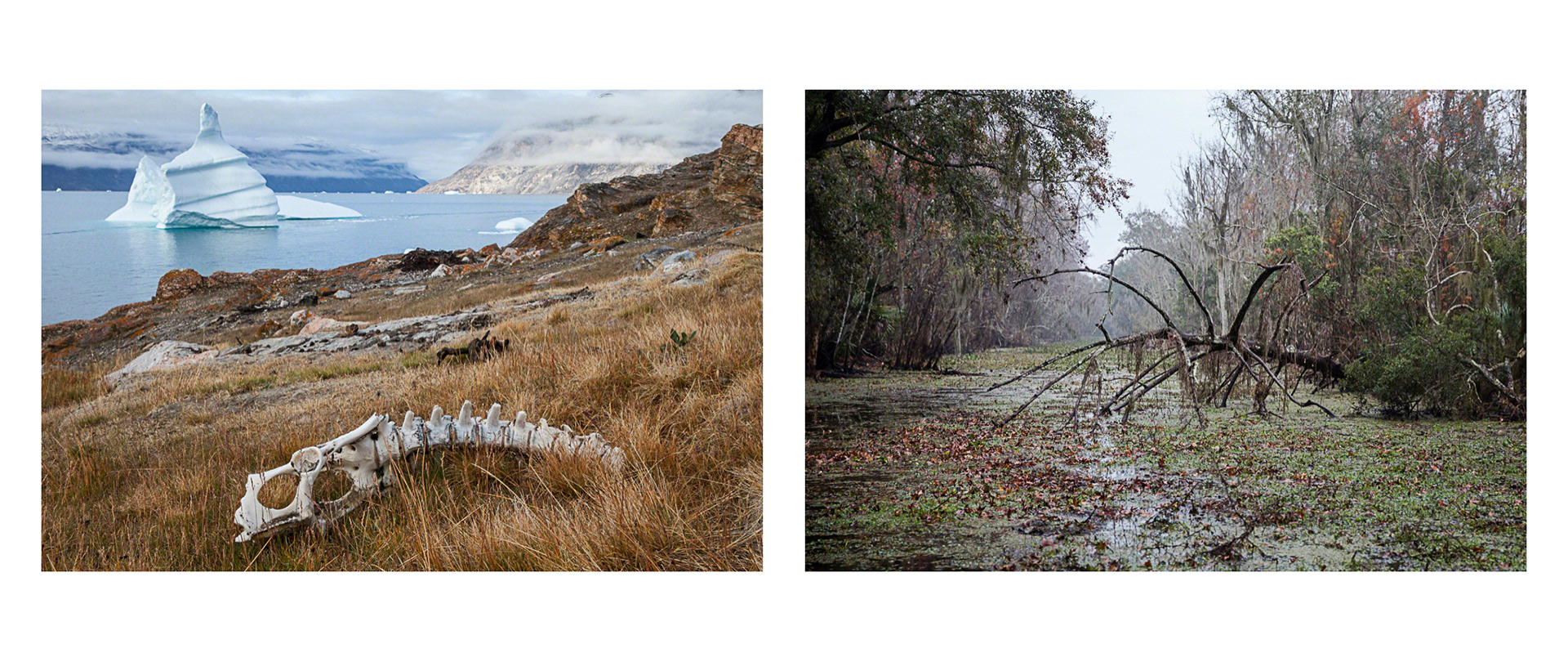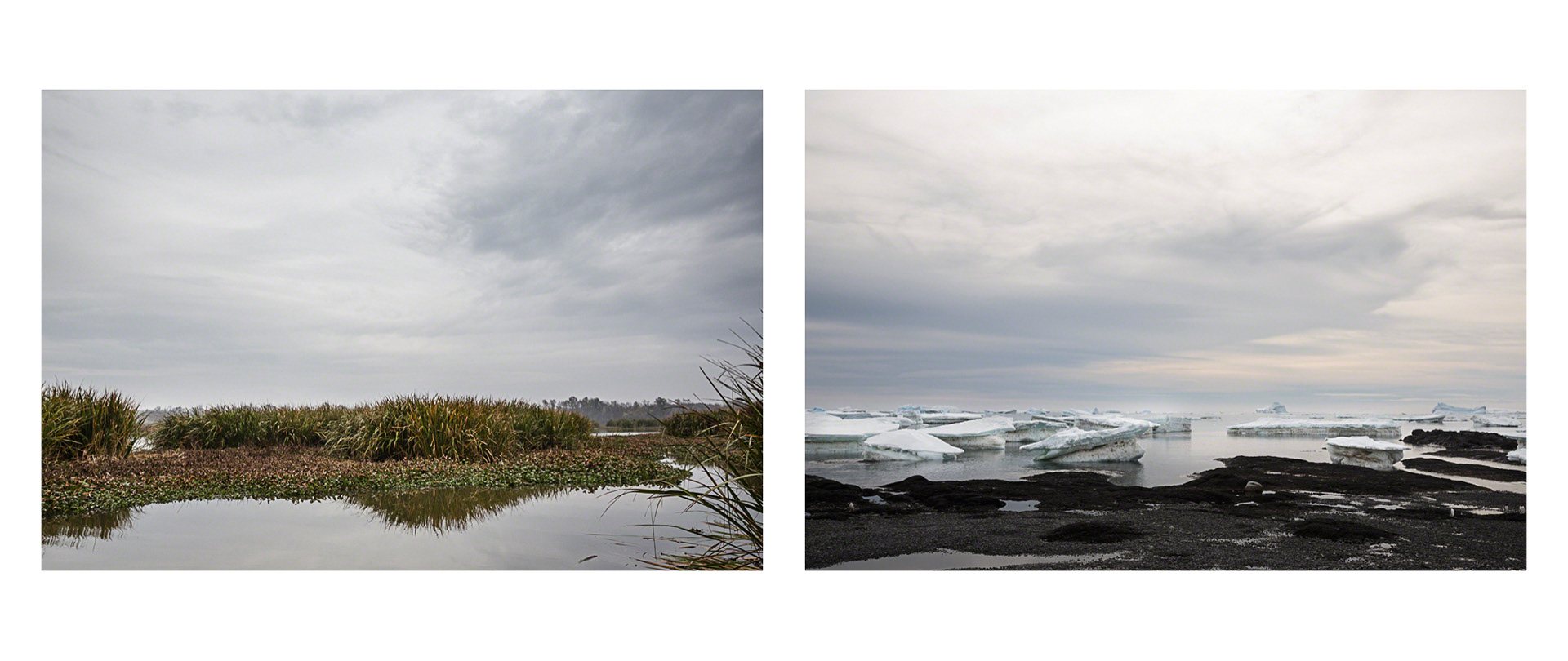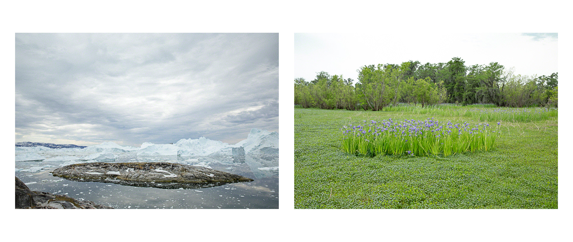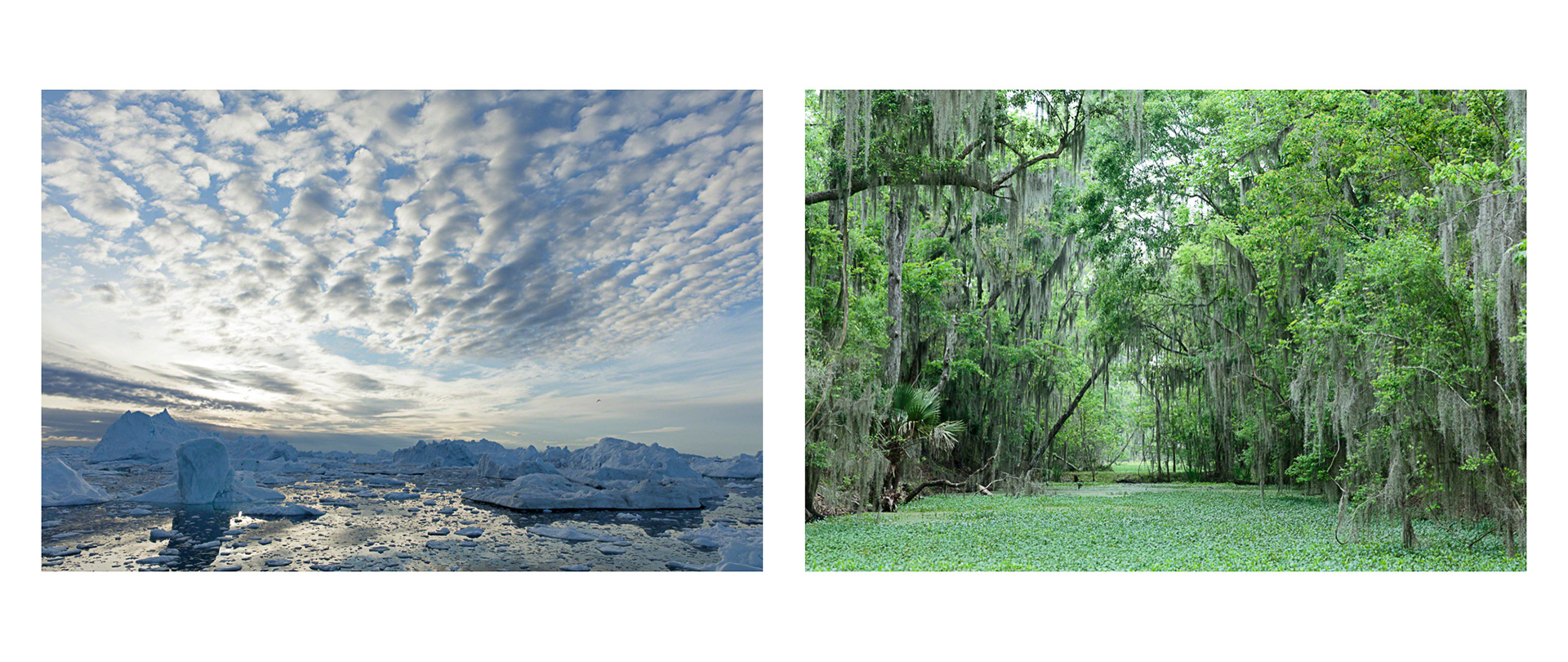 Over the course of seven years, Tina Freeman photographed the Louisiana wetlands and Arctic and Antarctic glaciers. In Lamentations, Freeman pairs images from each place in a series of diptychs that function as little stories about climate change, ecological balance, and the connectedness of things across time and space. The large, color photographs in Lamentations make plain the crucial, threatening, and global dialogue between water in two physical states.