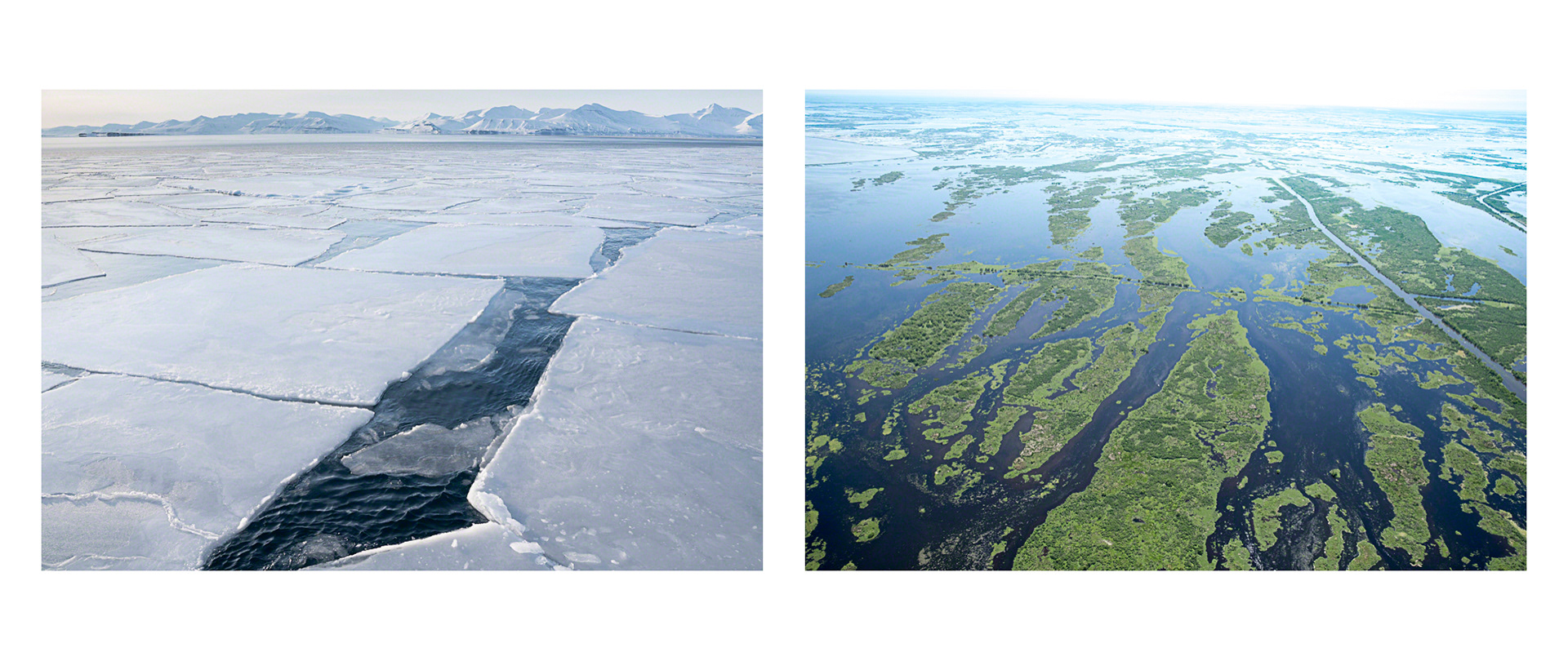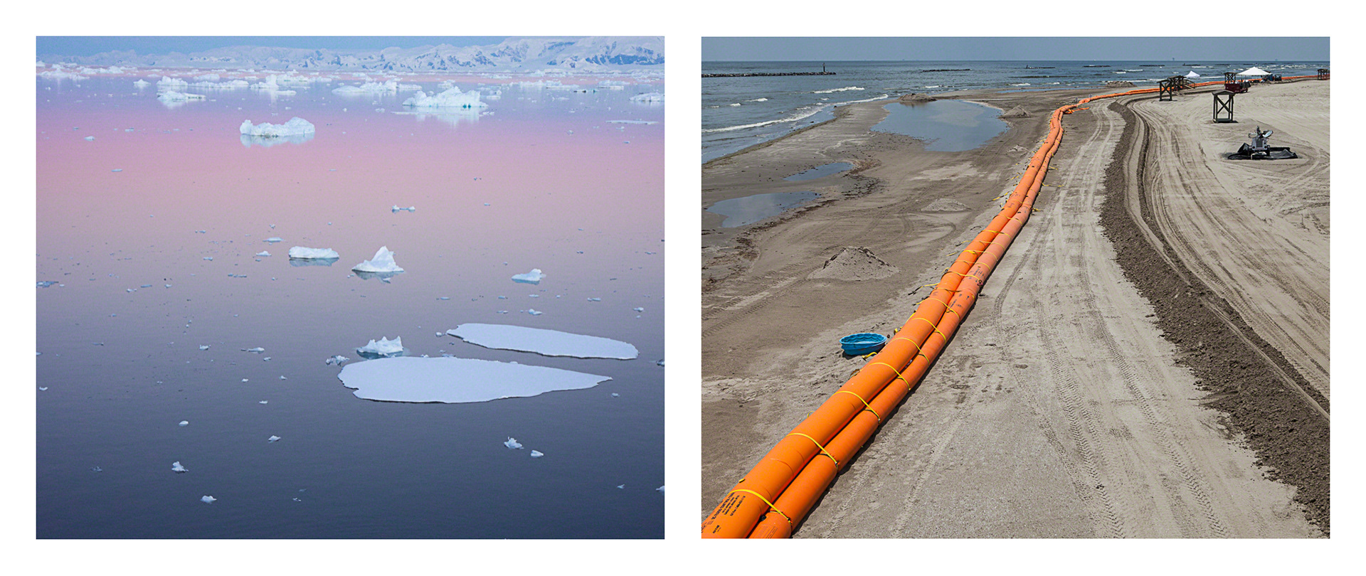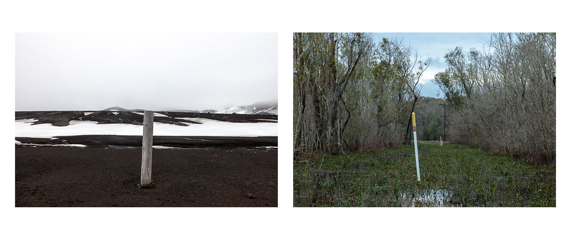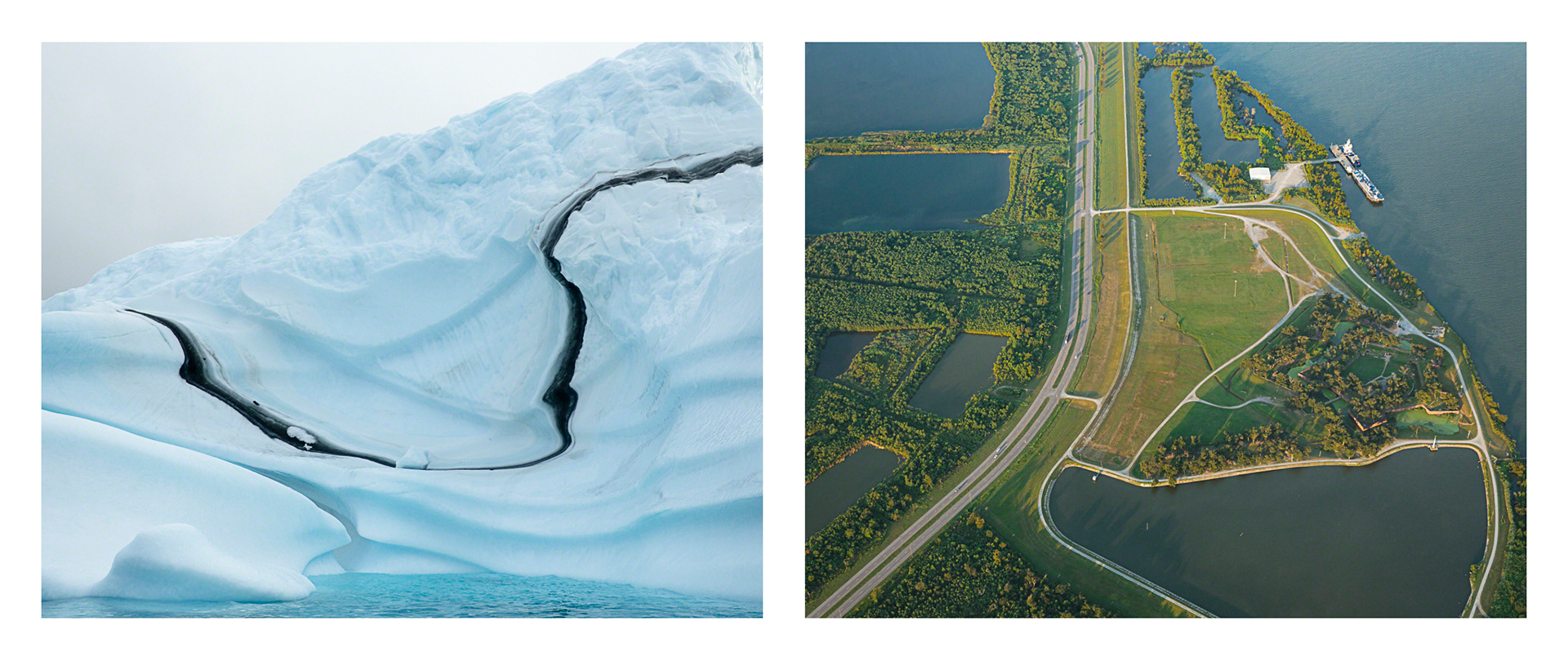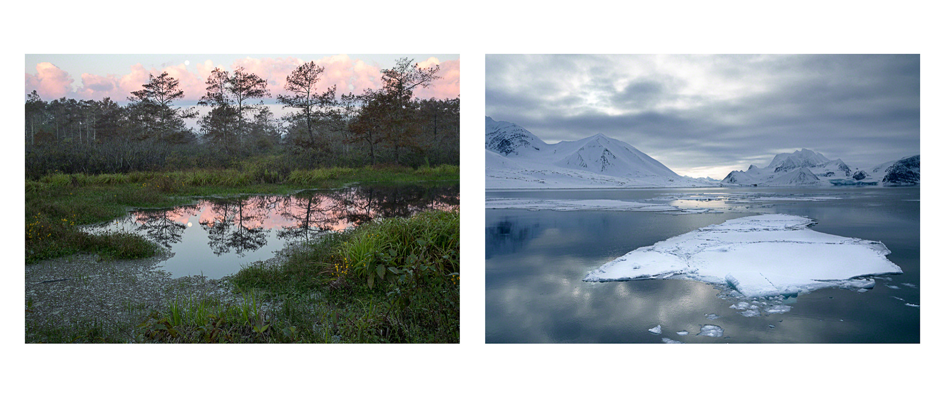 Over the course of seven years, Tina Freeman photographed the Louisiana wetlands and Arctic and Antarctic glaciers. In Lamentations, Freeman pairs images from each place in a series of diptychs that function as little stories about climate change, ecological balance, and the connectedness of things across time and space. The large, color photographs in Lamentations make plain the crucial, threatening, and global dialogue between water in two physical states.